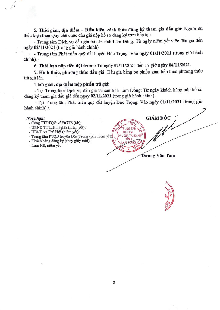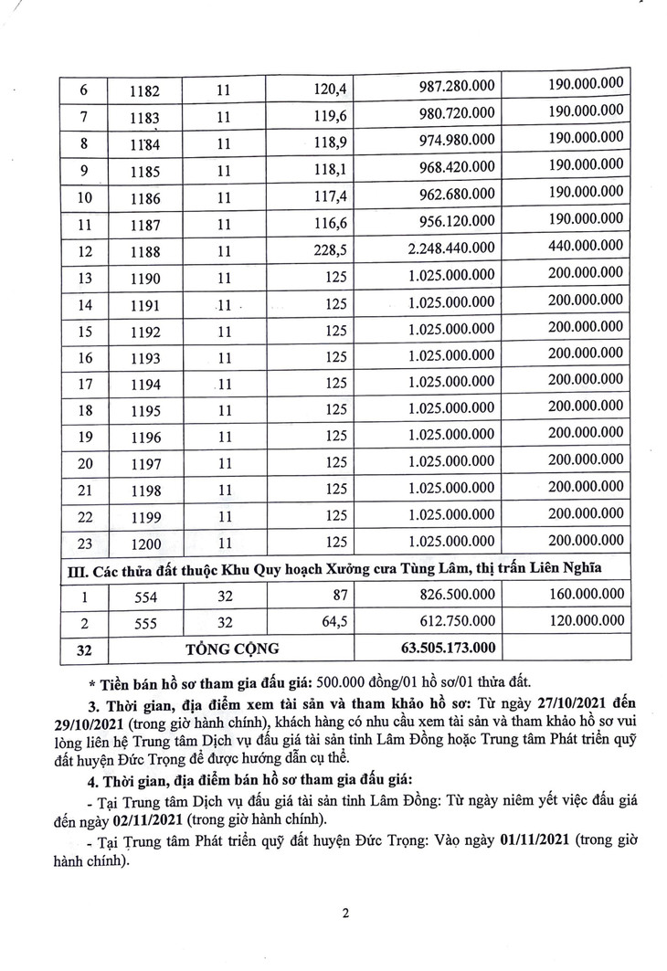 Ngày 5/11/2021, đấu giá quyền sử dụng 32 lô đất tại huyện Đức Trọng, tỉnh Lâm Đồng