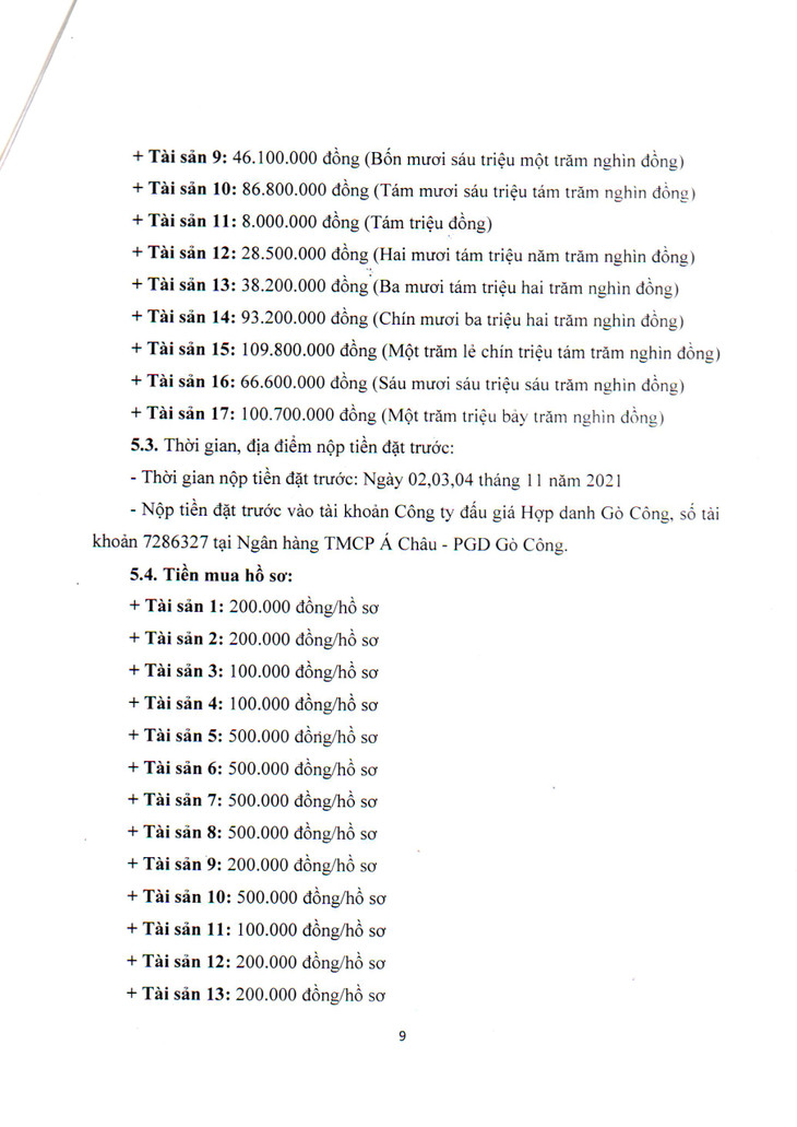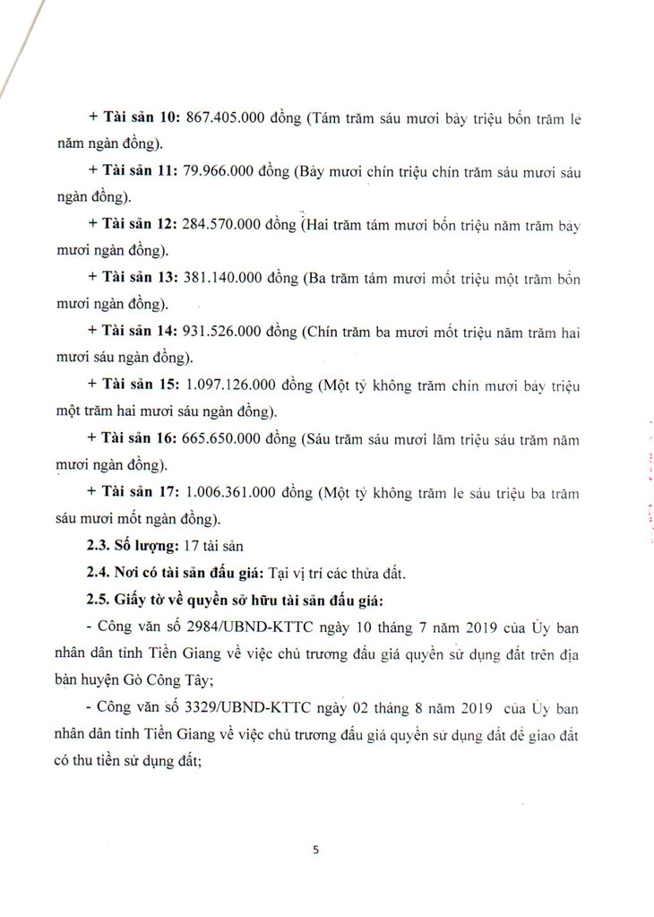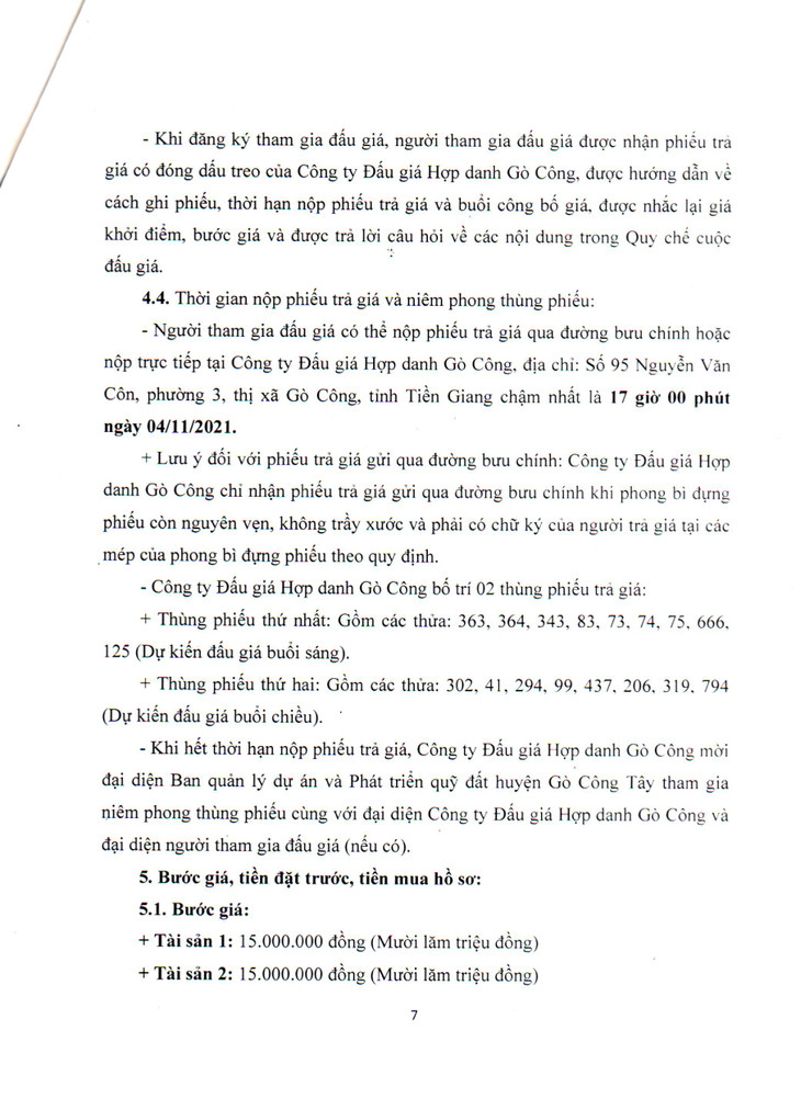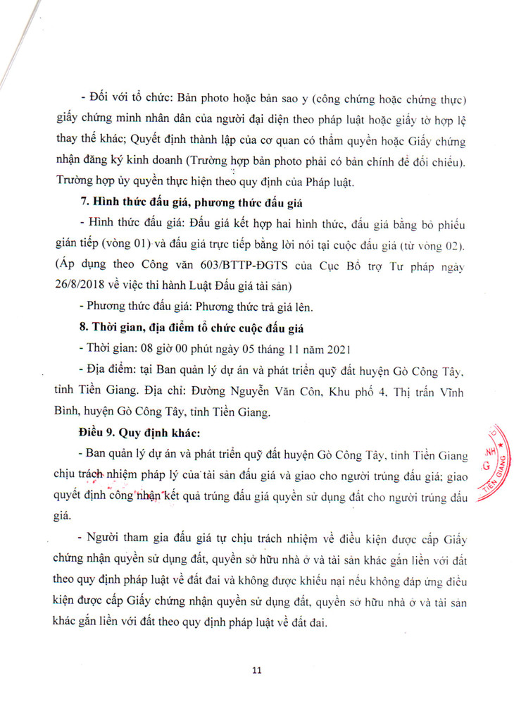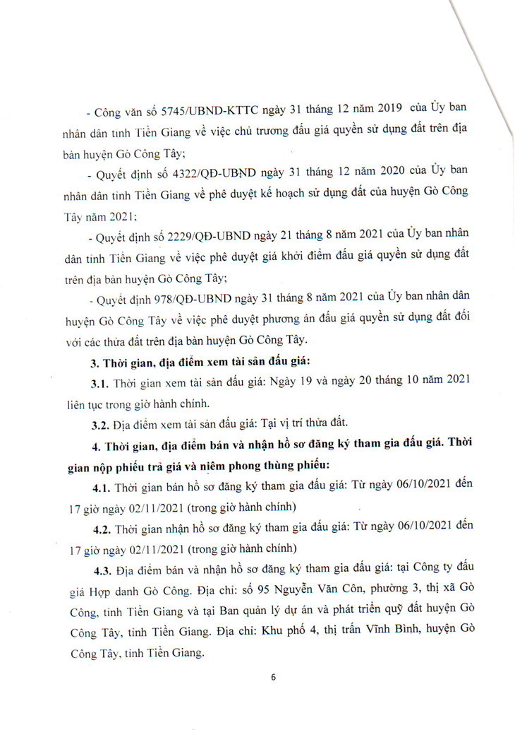 Ngày 5/11/2021, đấu giá quyền sử dụng đất tại huyện Gò Công Tây, tỉnh Tiền Giang
