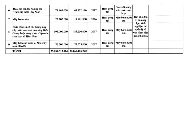 - Có bản cam kết trả ít nhất bằng giá khởi điểm đã được thông báo, sử dụng tài sản đúng mục đích, sản xuất cung cấp nước sinh hoạt đảm bảo theo tiêu chuẩn.