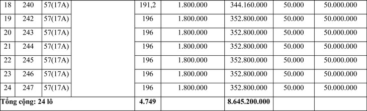 1. Tên quỹ đất: 24 lô đất tại tổ dân phố Hòa Đa Tây, thị trấn Phú Đa, huyện Phú Vang, tỉnh Thừa Thiên Huế.