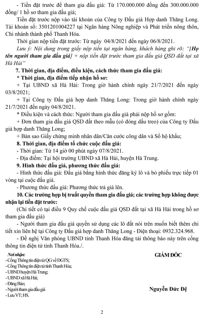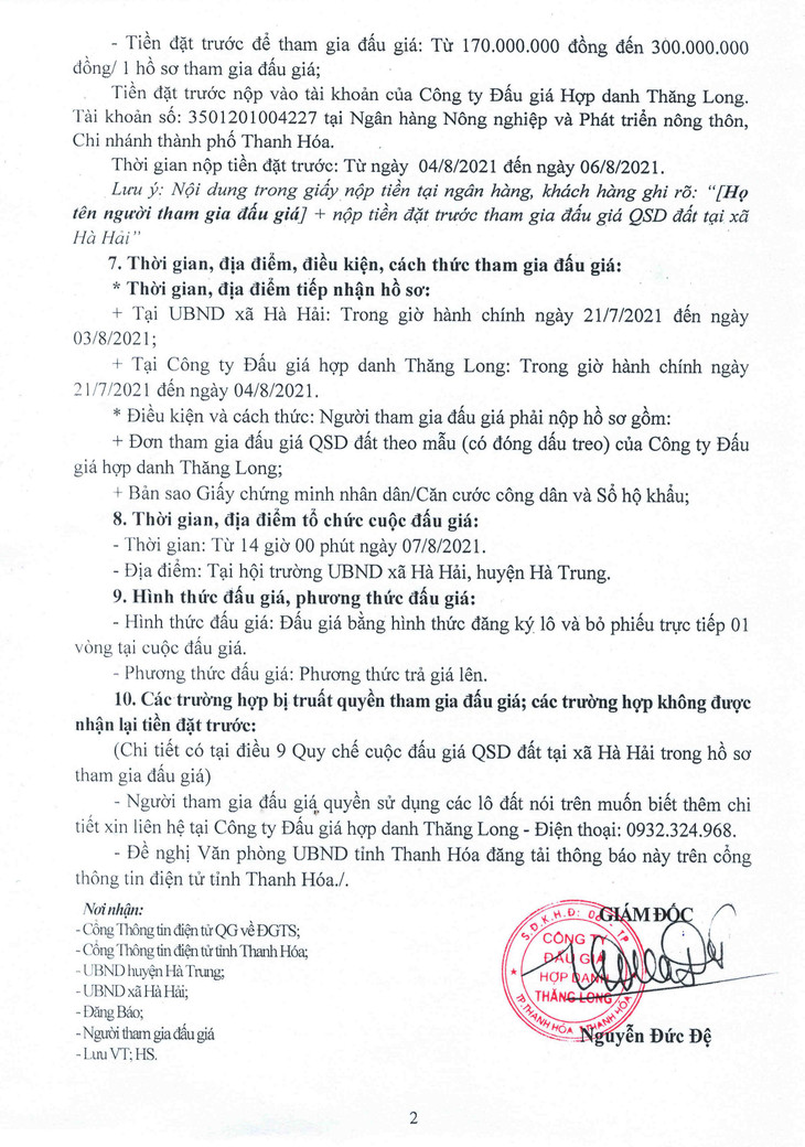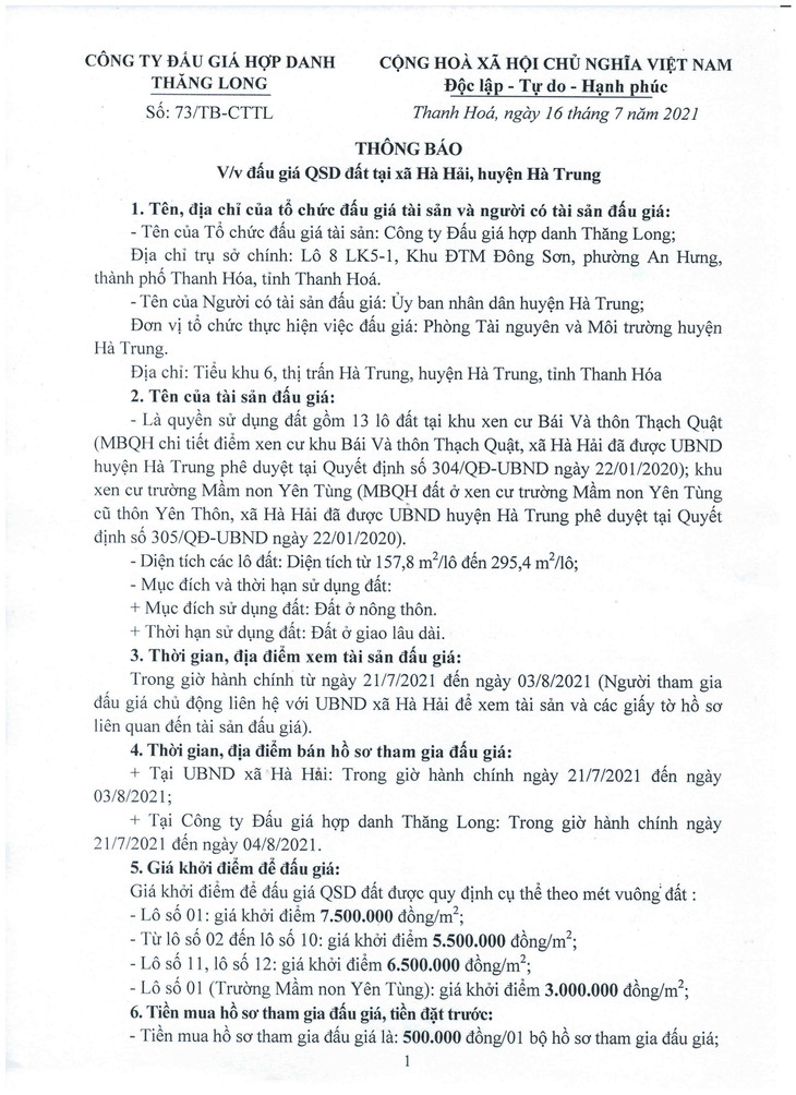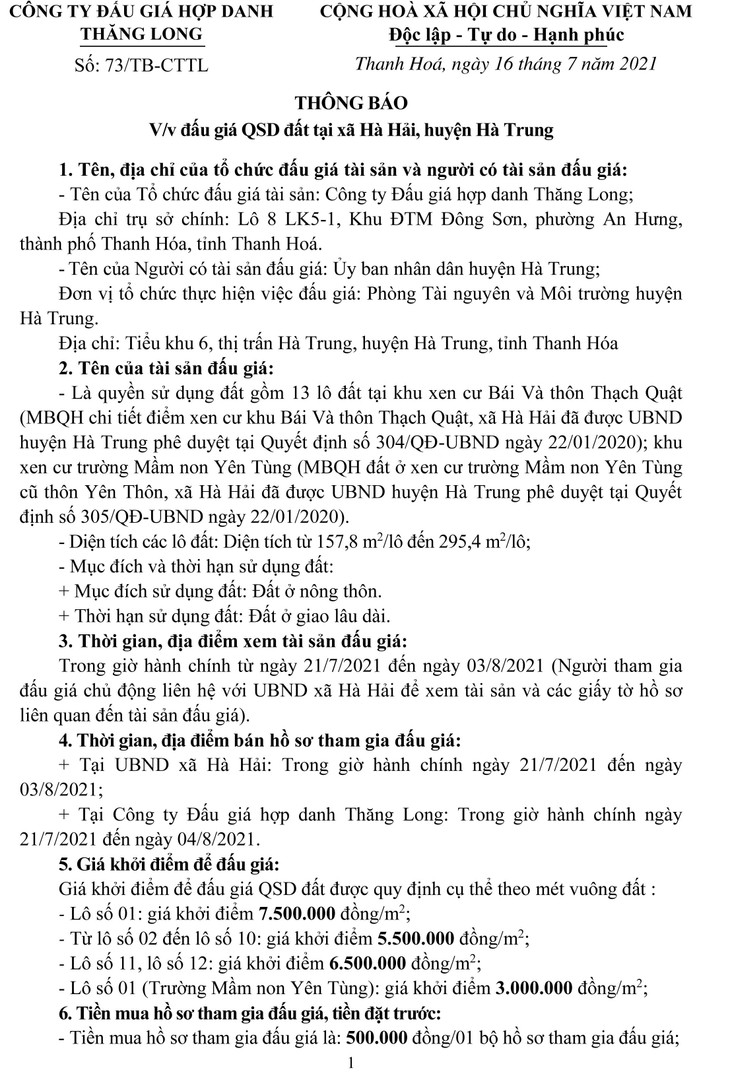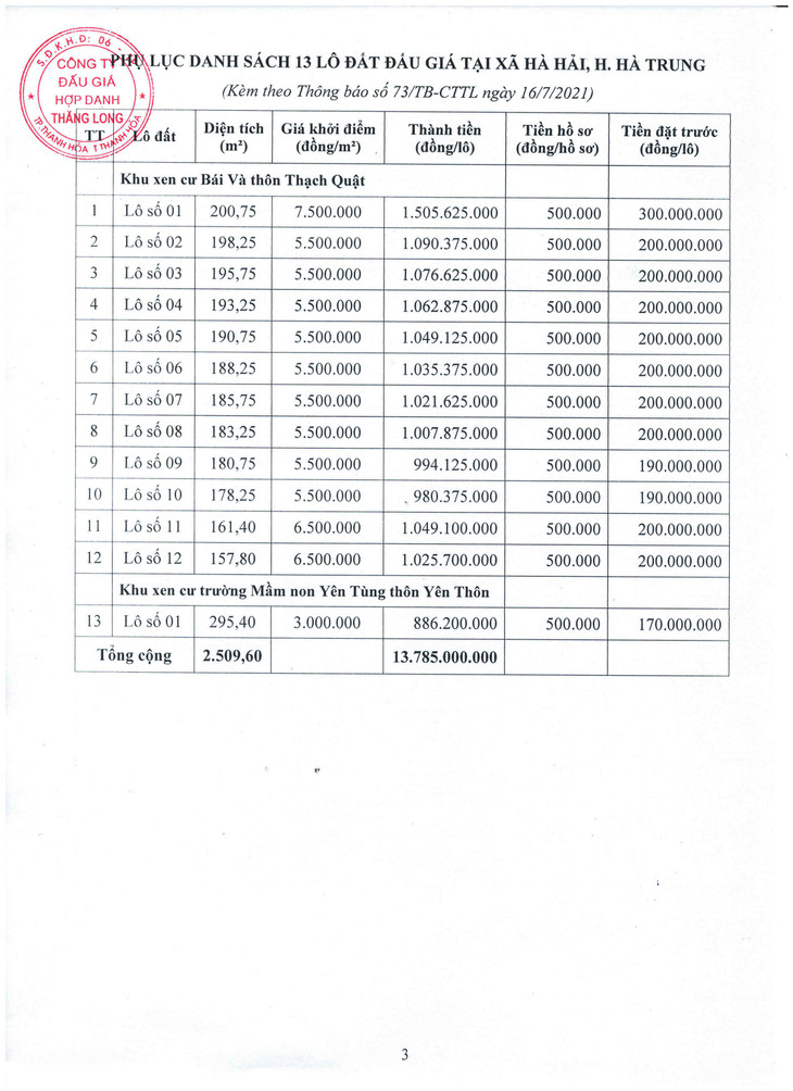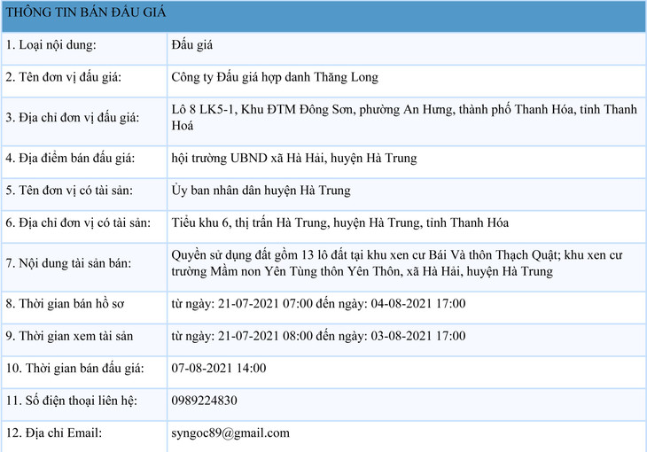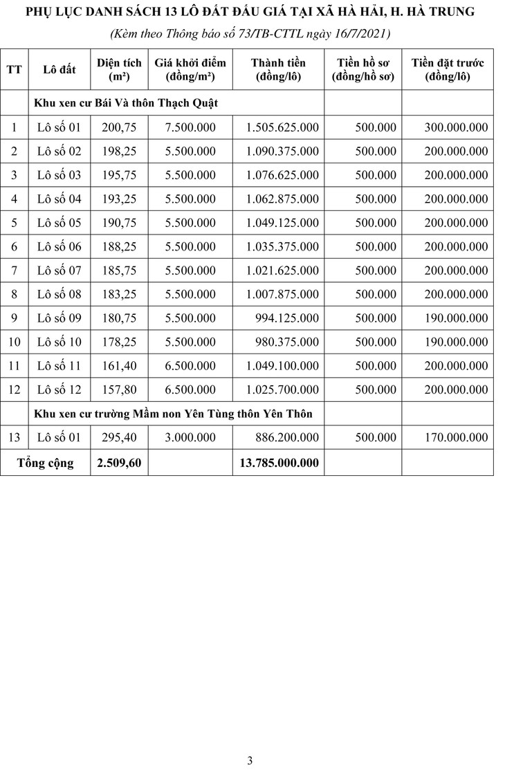 Quyền sử dụng đất gồm 13 lô đất tại khu xen cư Bái Và thôn Thạch Quật; khu xen cư trường Mầm non Yên Tùng thôn Yên Thôn, xã Hà Hải, huyện Hà Trung