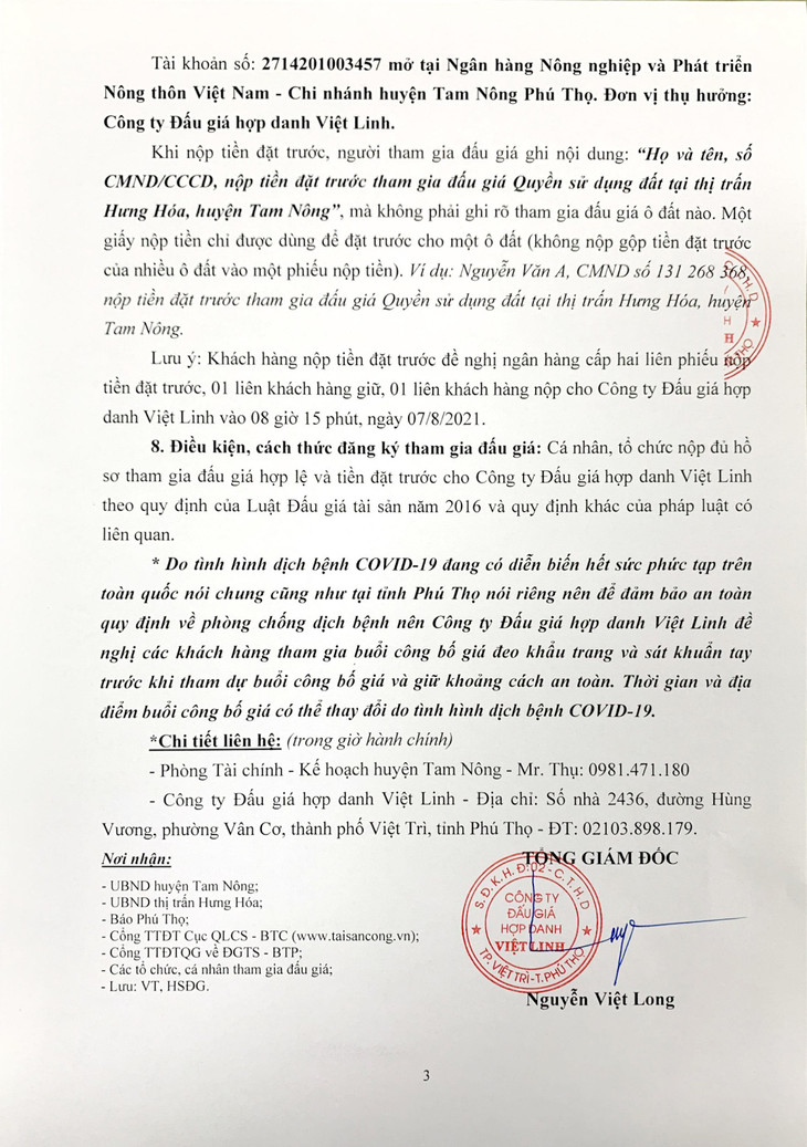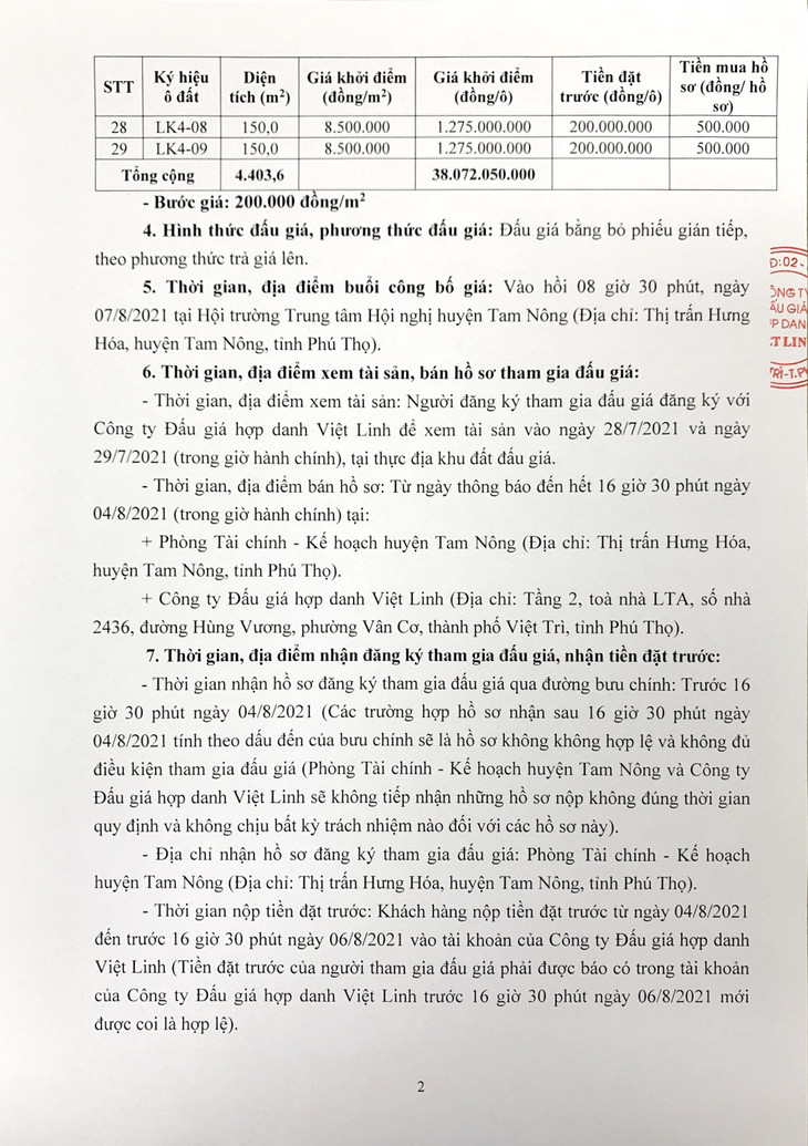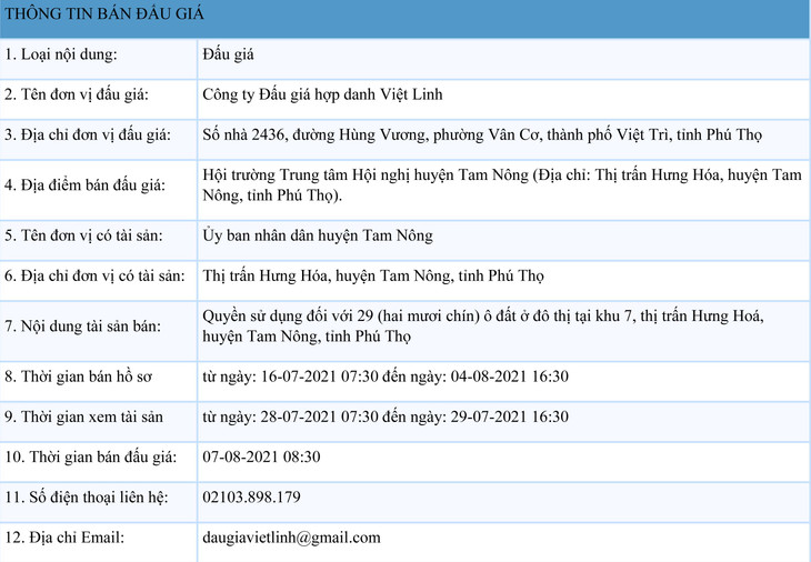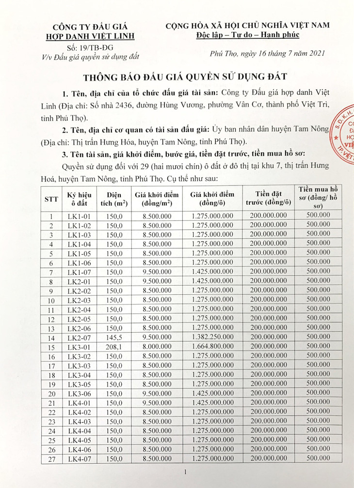 Quyền sử dụng đối với 29 (hai mươi chín) ô đất ở đô thị tại khu 7, thị trấn Hưng Hoá, huyện Tam Nông, tỉnh Phú Thọ