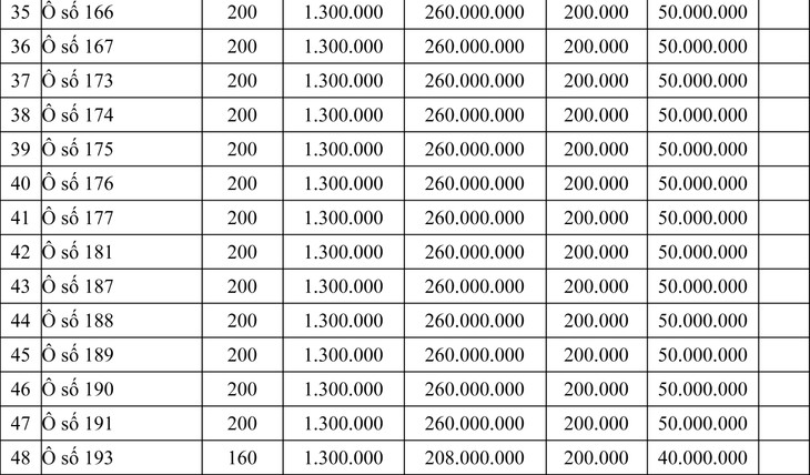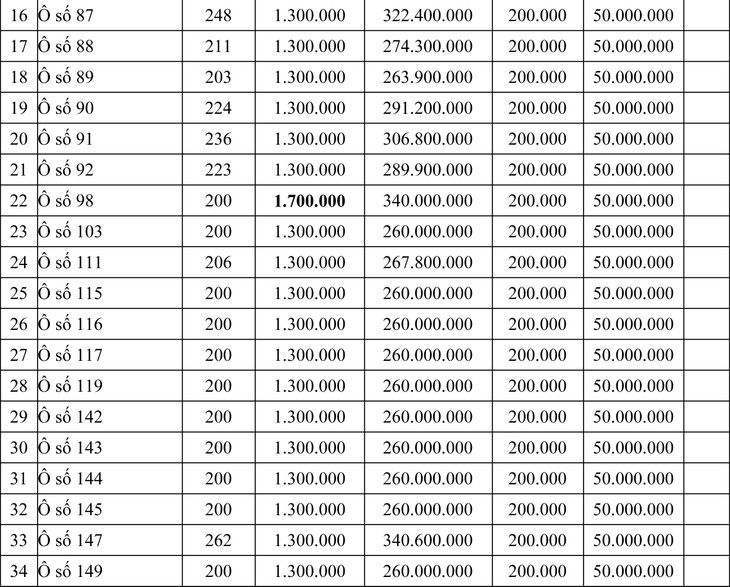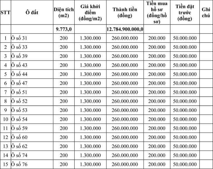 - Giá khởi điểm: từ 1.300.000đ đến 1.700.000đồng/m2.
