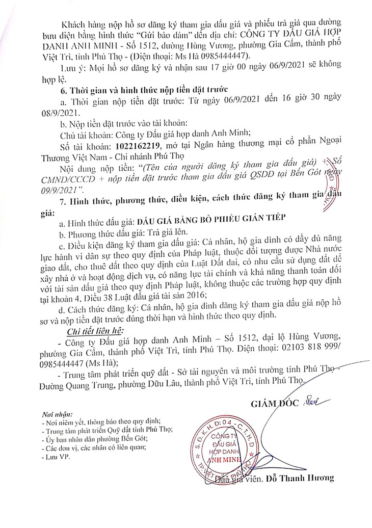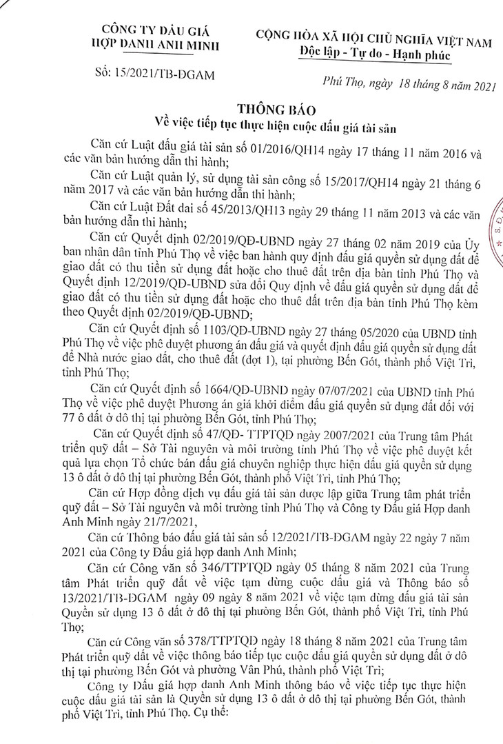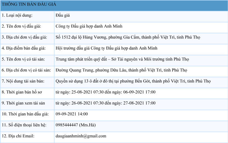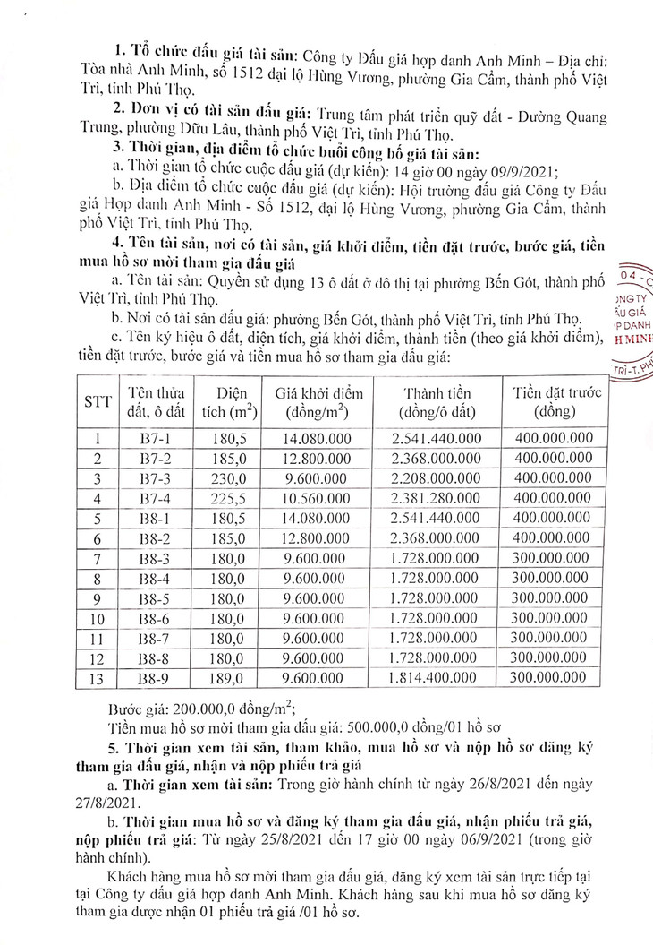Quyền sử dụng 13 ô đất ở đô thị tại phường Bến Gót, thành phố Việt Trì, tỉnh Phú Thọ