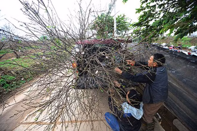 Nhiều người còn đánh cả xe ô tô để chở đào về nhà