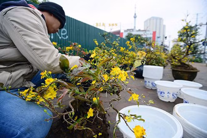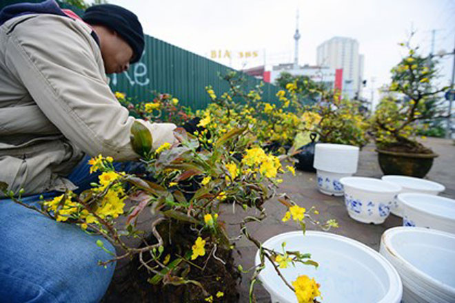 "Đặc sản" hoa mai miền Nam cũng không còn xa lạ gì vời người dân Thủ đô. Năm nay giá một cây vẫn khá đắt từ 2 triệu trở lên