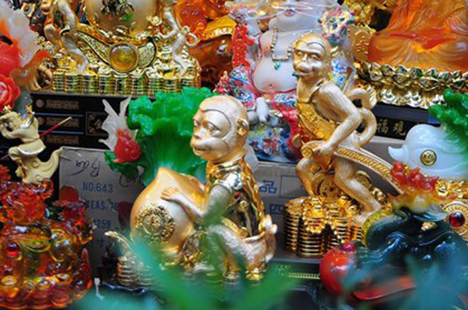 ượng khỉ phong thủy mạ vàng được coi là biểu tượng cho quyền quý, đem lại nhiều may mắn tài lộc, công danh đang là món hàng được nhiều người săn tìm trong dịp Tết năm nay
