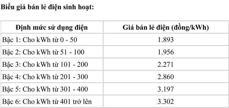 - Đối với trường hợp hợp đồng thuê nhà có thời hạn dưới 12 tháng và chủ nhà không thực hiện kê khai đầy đủ số người sử dụng điện thì áp dụng giá bán lẻ điện sinh hoạt của bậc 3: Từ 101 – 200kWh cho toàn bộ sản lượng điện đo đếm được tại công tơ.