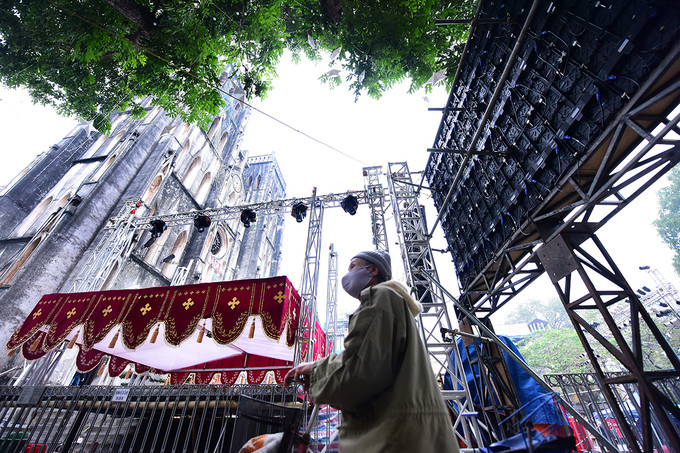Màn hình led và giàn đèn lớn đã được lắp đặt, tất cả sẵn sàng cho buổi lễ, cầu nguyện một Giáng sinh an lành tới mọi người, mọi nhà.