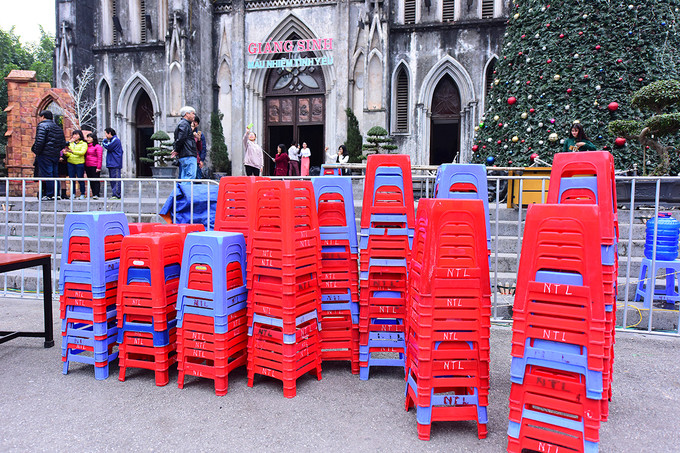 Ghế cũng đã được chuẩn bị đầy đủ cho giáo dân tham dự lễ Giáng sinh.