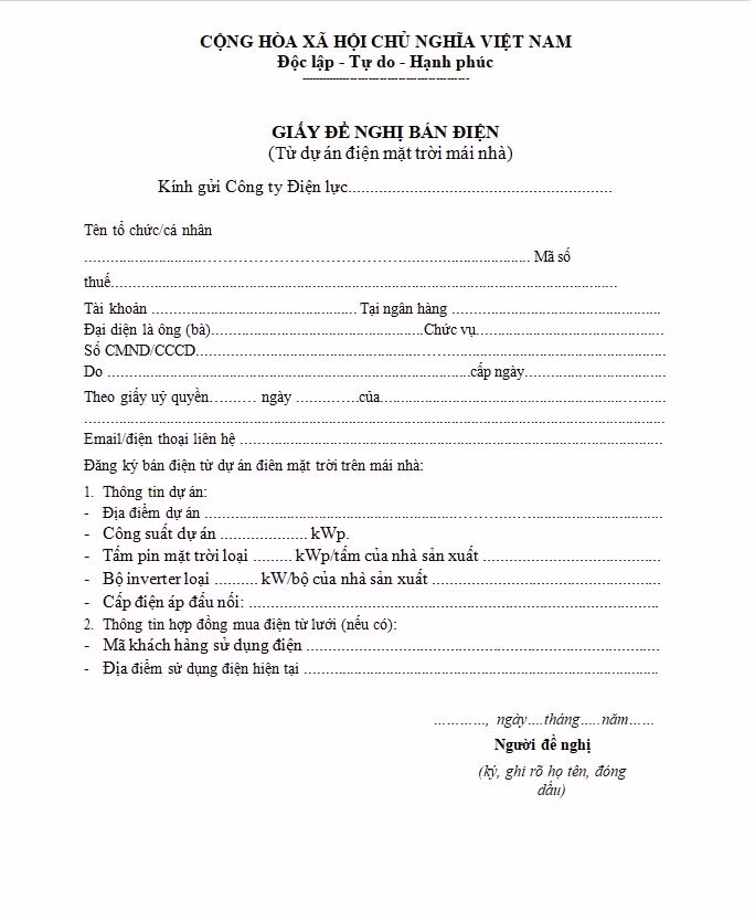 Để thuận tiện cho việc thực hiện các trình tự đăng ký mua bán ĐMTAM, EVN HANOI cung cấp biểu mẫu đăng ký căn cứ Thông tư số 16/2017/TT-BCT ngày 12/9/2017 của Bộ Công Thương quy định về phát triển dự án và Hợp đồng mua bán điện áp dụng cho các dự án điện mặt trời và Thông tư số 05/2019 ngày 11/3/2019 về việc sửa đổi, bổ sung một số điều của Thông tư số 16/2017/TT-BCT ngày 12/9/2017.
