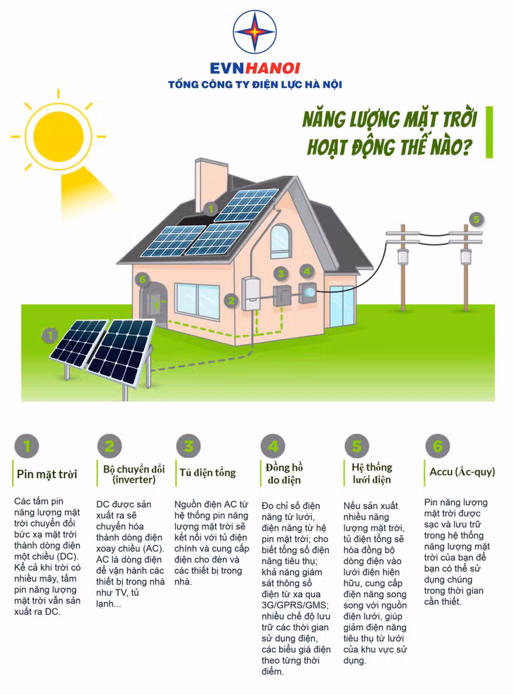 Theo ông Vũ Thế Thắng - Phó Trưởng Ban Kinh doanh EVN HANOI cho biết, EVN HANOI đã cho triển khai lắp đặt hệ thống điện mặt trời áp mái tại trụ sở Tổng công ty, Trung tâm Sửa chữa điện nóng (hotline) - Công ty Lưới điện cao thế TP. Hà Nội, Công ty Điện lực Nam Từ Liêm, các trạm biến áp 110 - 220kV… Việc sử dụng hệ thống năng lượng mặt trời sẽ góp phần tiết kiệm điện, tăng hiệu quả sản xuất, kinh doanh đồng thời bảo vệ môi trường, ứng phó biến đổi khí hậu.