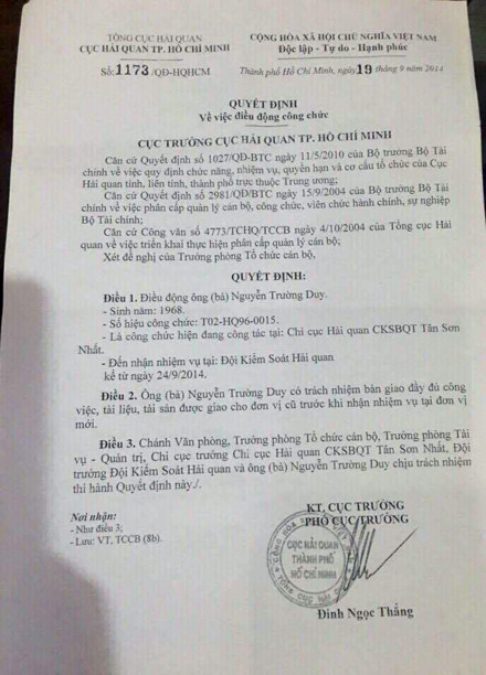 Không chỉ vậy, theo báo cáo ngày 4/10/2016 của Phòng tổ chức cán bộ Cục Hải quan thành phố thì chỉ trong 3 năm, ông Đinh Ngọc Thắng đã 8 lần đi nước ngoài trong đó 3 lần đi sai phép. Tuy nhiên, ông Hoàng Việt Cường, Phó Tổng cục phụ trách đã kết luận trường hợp ông Thắng “là đúng theo quy định”.