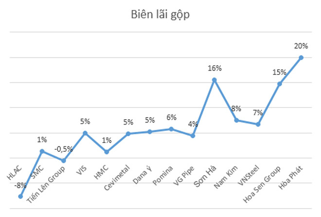 Ngoài những doanh nghiệp top đầu như Hòa Phát, Hoa Sen thì nhìn chung biên lợi nhuận ngành thép năm qua khá thấp, chỉ quanh ngưỡng 5%.