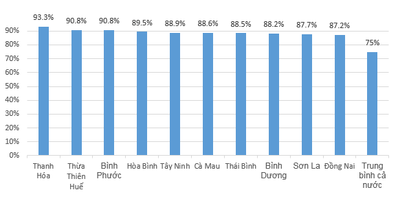 Tiếp theo là Tập đoàn Bưu chính viễn thông (đạt tỷ lệ 93,4% về số lượng), Tổng công ty Thép Việt Nam (92,3%); Tổng công ty Hàng hải Việt Nam (88,9%) và Tổng công ty Đường sắt Việt Nam (82,9%).