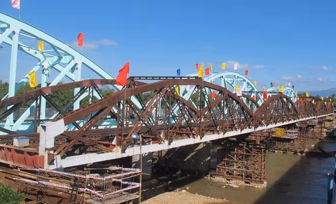 44 cầu đường sắt Bắc Nam. Ngày 26/12, cầu Tháp Chàm mới (địa bàn Ninh Thuận) đã được lắp dựng thay thế cầu Tháp Chàm cũ. Đây là cầu cuối cùng đánh dấu hoàn tất dự án thay thế 44 cầu tuổi thọ gần một thế kỷ nằm tại các điểm xung yếu của tuyến đường sắt Bắc Nam. Nhiều cầu được xây dựng tại khu vực miền Trung điều kiện thuỷ văn phức tạp, bom mìn còn sót lại, nên thường xuyên phải thay đổi biện pháp thi công. Dự án có tổng vốn đầu tư hơn 9.200 tỷ đồng từ vốn vay ODA của Nhật Bản, đã được triển khai qua nhiều năm. Sau khi 44 cầu hoàn thành sẽ góp phần hiện đại hóa hạ tầng đường sắt, tàu Bắc Nam sẽ được rút ngắn hành trình chạy tàu xuống 2-3 giờ so với trước. Ảnh: Đoàn Loan