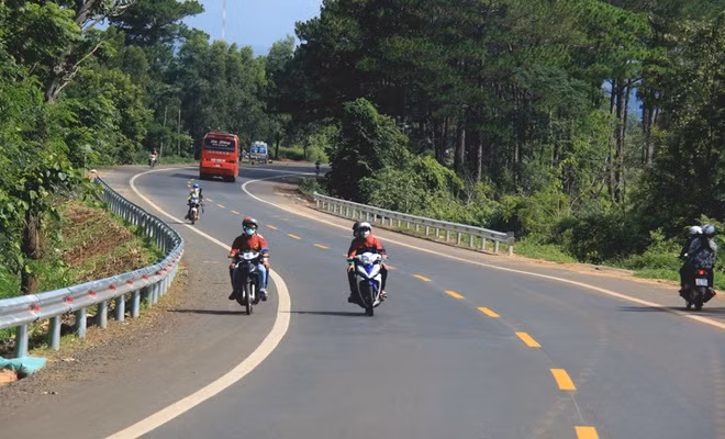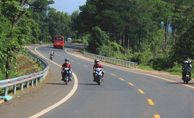 Đường Hồ Chí Minh qua Tây Nguyên (quốc lộ 14) đã hoàn thành mở rộng, nâng cấp vào tháng 7/2015 với chiều dài 420 km. Đường có 2 làn xe cơ giới, 2 làn xe thô sơ, một số đoạn qua đô thị được mở rộng đến 4 làn xe cơ giới, tốc độ thiết kế đạt đến 80 km/h. Xuyên qua núi rừng Tây Nguyên, đường Hồ Chí Minh được nâng cấp đã xóa đi "con đường đau khổ" trước kia, tạo điều kiện cho người dân đi lại và góp phần thúc đẩy kinh tế - xã hội các tỉnh Tây Nguyên. Ảnh: Đoàn Loan