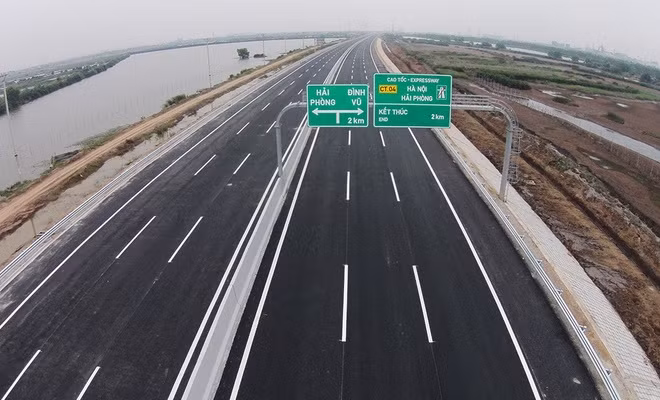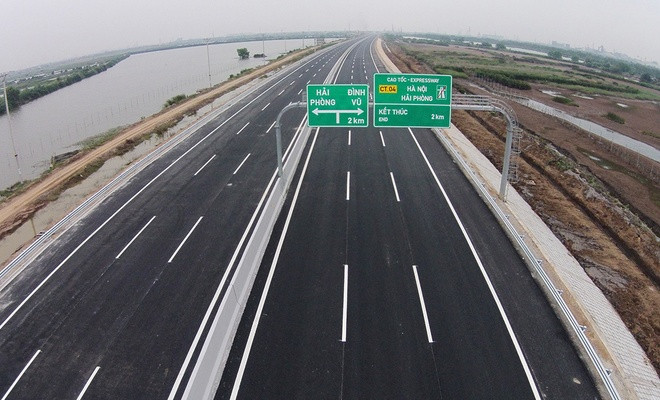 Cao tốc Hà Nội - Hải Phòng dài 105 km, là tuyến đường rộng nhất cả nước với 6 làn xe, 2 làn dừng khẩn cấp. Tại lễ thông xe ngày 5/12, Thủ tướng Nguyễn Tấn Dũng đánh giá tuyến cao tốc này đạt tiêu chuẩn tiên tiến của thế giới, hiện đại nhất Việt Nam. "Con đường có nhiều ý nghĩa, nếu phương tiện đi từ Hà Nội đến Hải Phòng mất 2,5 giờ trên quốc lộ 5 thì nay chỉ trong 1-1,5 giờ", Thủ tướng Nguyễn Tấn Dũng nói. Ngay sau khi hoàn thành, cao tốc này đã giúp giảm quá tải phương tiện trên quốc lộ 5 Hà Nội - Hải Phòng với lưu lượng hơn 9.000 lượt xe lưu thông mỗi ngày. Ảnh: Giang Huy