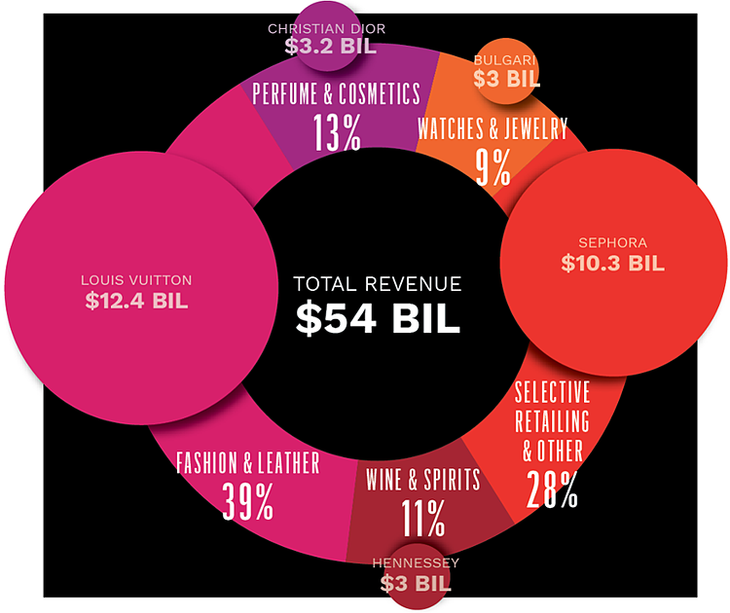 Sau khi chinh phục Louis Vuitton Moet Hennessy, Arnault chi hàng tỷ USD mua lại các công ty hàng đầu châu Âu trong các lĩnh vực thời trang, nước hoa, mỹ phẩm và đồng hồ, rượu vang và rượu mạnh. Kể từ năm 2008, LVMH đã mua 20 công ty, sở hữu tổng cộng 79 thương hiệu. Năm 2011, LVMH chi gần 5 tỷ USD mua phần lớn cổ phần của công ty trang sức Bulgari của Italy. Hai năm sau, tập đoàn này mua lại nhà cung cấp len mịn Loro Piana với giá 2,6 tỷ USD. Tiếp đó vào tháng 4/2019, LVMH chi 3,2 tỷ USD mua lại Tập đoàn khách sạn Belmond có trụ sở tại London, sở hữu các khách sạn Cipriani ở Venice, Italy và ba nhà nghỉ xa xỉ ở Botswana.