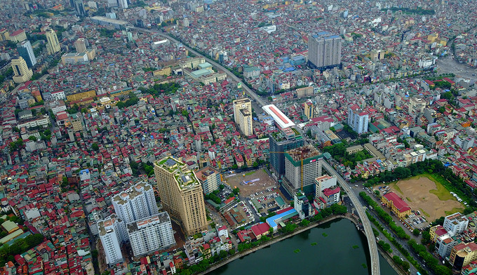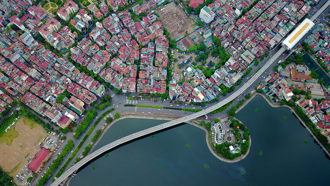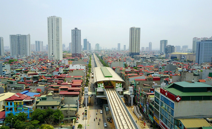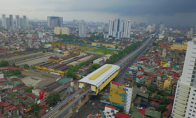 Đoạn đường sắt trên cao chạy qua khu đô thị Royal city.