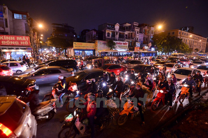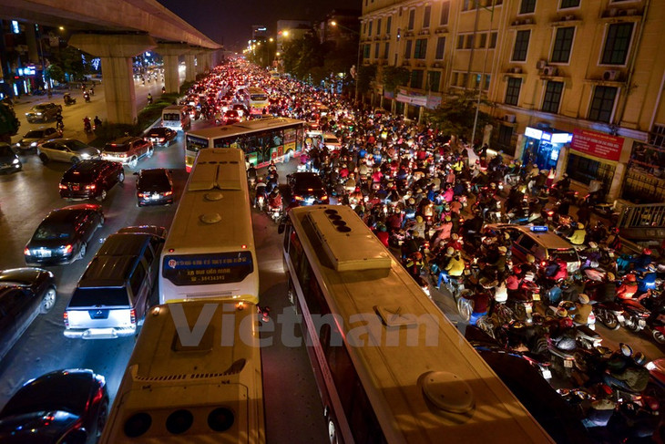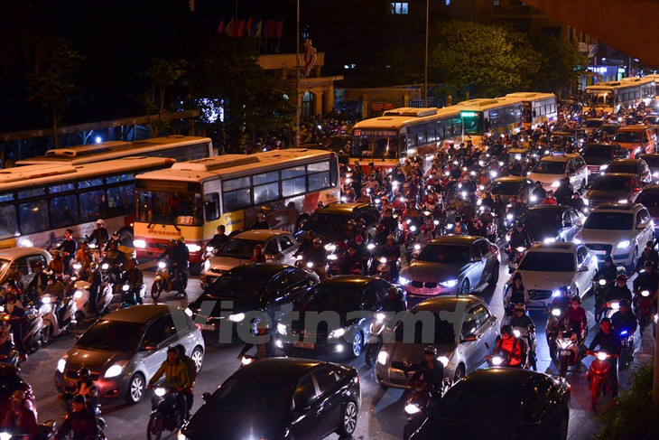 Cơ sở hạ tầng giao thông không phát triển kịp với số lượng phương tiện giao thông tăng mạnh mẽ mỗi năm. (Ảnh: PV/Vietnam+)