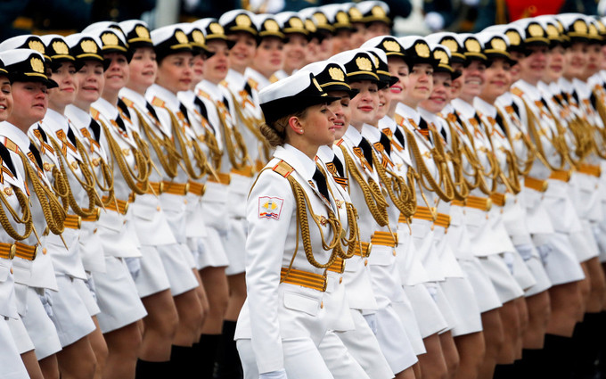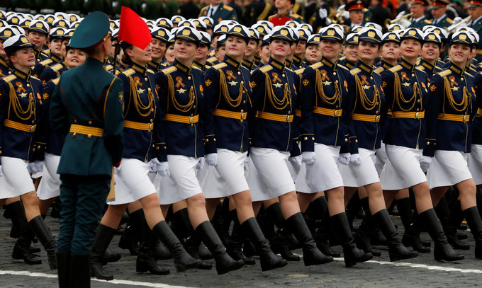 Khối duyệt binh nữ có tổng cộng 210 người thuộc nhiều học viện quân sự khác nhau của quân đội Nga.