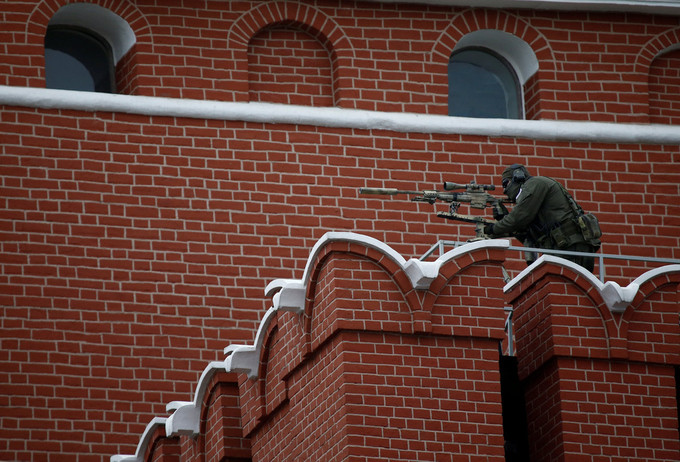 An ninh được siết chặt. Lực lượng an ninh Nga đã triển khai nhiều tay súng bắn tỉa trên các tòa nhà cao tầng để bảo vệ khu vực Quảng trường Đỏ.