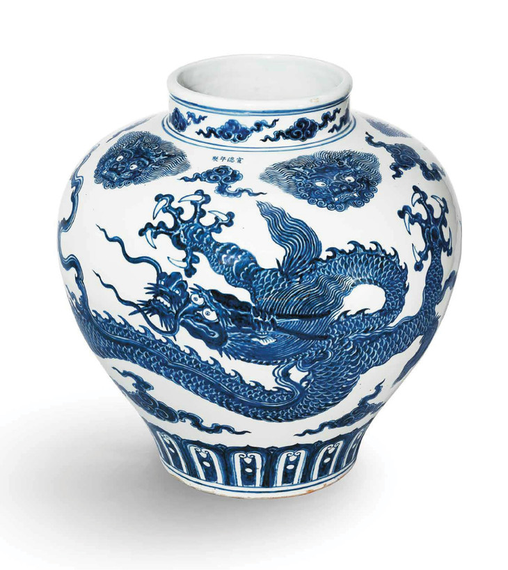 Chiếc bình cổ họa tiết rồng này có niên đại gần 600 năm, được làm ra từ thời Hoàng đế Minh Tuyên Tông (Trung Quốc). Theo giới sành về cổ vật, thời trị vì của vị vua này (1426 - 1435) là giai đoạn đỉnh cao của nghề sản xuất gốm sứ Trung Quốc. Nhờ có sự hỗ trợ đắc lực của triều đình, kết hợp với kỹ thuật thủ công tinh xảo và cảm hứng nghệ thuật phong phú, các nghệ nhân dưới thời Minh Tuyên Tông đã làm ra những sản phẩm gốm ấn tượng nhất trong lịch sử nghề gốm sứ của nước này.