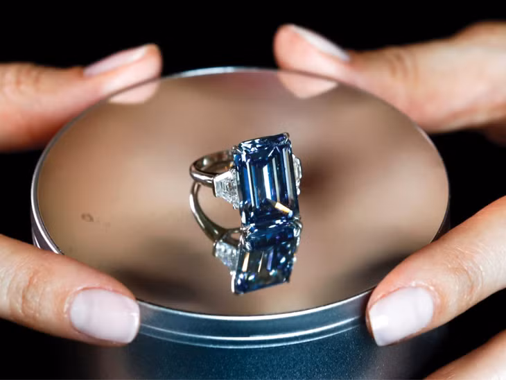 Viên kim cương xanh mang tên “Ohppenheimer” - đồ trang sức quý hàng đầu của nhà đấu giá Christie trong cuộc bán đấu giá hồi tháng 5 tại Geneva (Thụy Sỹ), đã trở thành viên đá đắt nhất thế giới hiện tại.