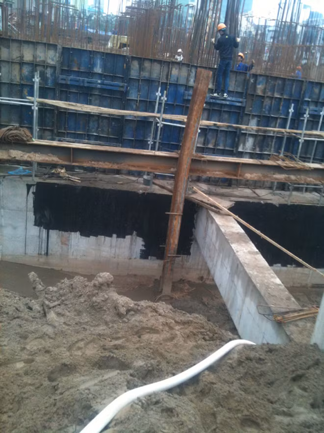Một phần công trình bị "lỗi" đang phải sửa, vá