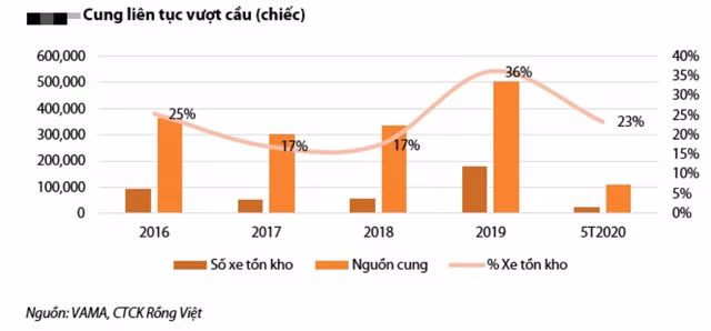 Cùng với đó, lượng xe tồn kho năm 2019 là rất lớn với khoảng 182.000 chiếc (chiếm 36% tổng nguồn cung năm 2019) nên áp lực thanh lý hàng tồn kho là rất cao.