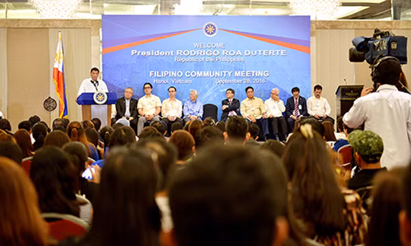 "Tôi muốn nói với các bạn rằng đây sẽ là cuộc tập trận chung cuối cùng. Tôi sẽ duy trì mối liên minh quân sự với Mỹ vì hai nước có thoả thuận ký từ đầu những năm 1950. Nhưng tôi sẽ thiết lập các liên minh mới về thương mại và Mỹ đang lên kế hoạch cho các cuộc tập trận, điều mà Trung Quốc không muốn", ông Duterte nói khi gặp gỡ khoảng 500 người Philippines tại Hà Nội tối qua.