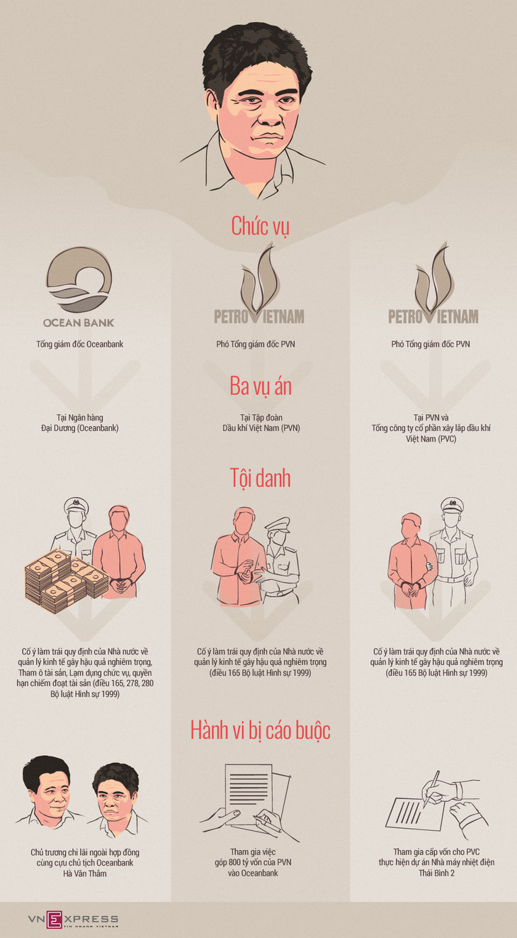 Chủ trương chi lãi suất ngoài hợp đồng ở Oceanbank, tham gia góp trái luật ở PVN... là những sai phạm khiến ông Nguyễn Xuân Sơn vướng lao lý ở ba vụ án.