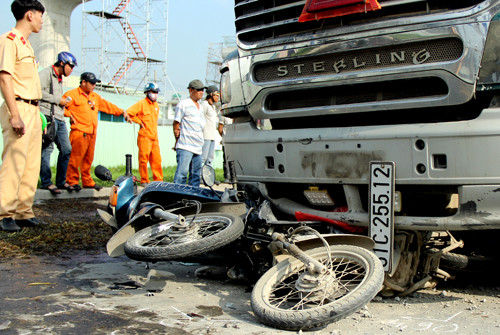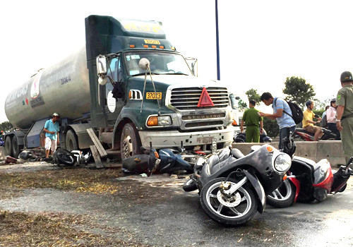 7h, ôtô đầu kéo chở bồn gas chạy trên Xa lộ Hà Nội, hướng từ Thủ Đức về trung tâm TP HCM. Vừa đổ dốc cầu Rạch Chiếc (quận 2), ôtô bất ngờ đâm vào dải phân cách, lao qua đám đông xe máy đang chờ đèn đỏ.