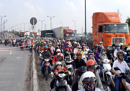 Xa lộ Hà Nội kẹt cứng sau tại nạn. Ảnh: Hải Hiếu