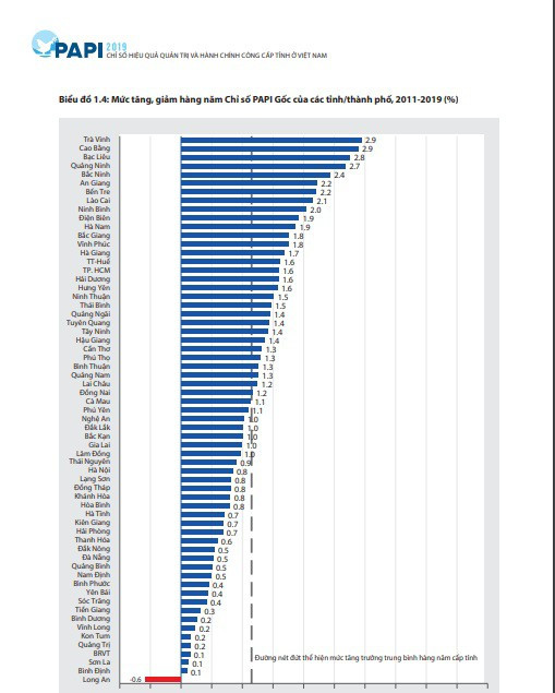 Đây là kết quả nghiên cứu của Báo cáo chỉ số PAPI năm 2019 vừa được nhóm nghiên cứu của Trung tâm Nghiên cứu Phát triển và hỗ trợ cộng đồng (CECODES) phối hợp cùng Công ty Phân tích thời gian thực, Chương trình phát triển Liên hợp quốc (UNDP) và Trung tâm Bồi dưỡng cán bộ và Nghiên cứu khoa học thuộc Mặt trận Tổ quốc Việt Nam (VFF-CRT) công bố sáng ngày 28/4.