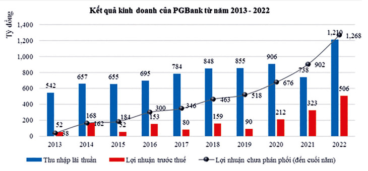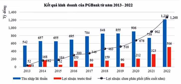 Năm 2022, báo cáo tài chính tự lập của PGBank cho biết, lợi nhuận trước thuế đạt 505,7 tỷ đồng, tăng 53,7% so với năm 2021 và vượt 24% kế hoạch. Ngoại trừ lợi nhuận từ mua bán chứng khoán đầu tư sụt giảm, thu nhập lãi thuần, thu nhập từ hoạt động dịch vụ và kinh doanh ngoại hối đều tăng trưởng mạnh.