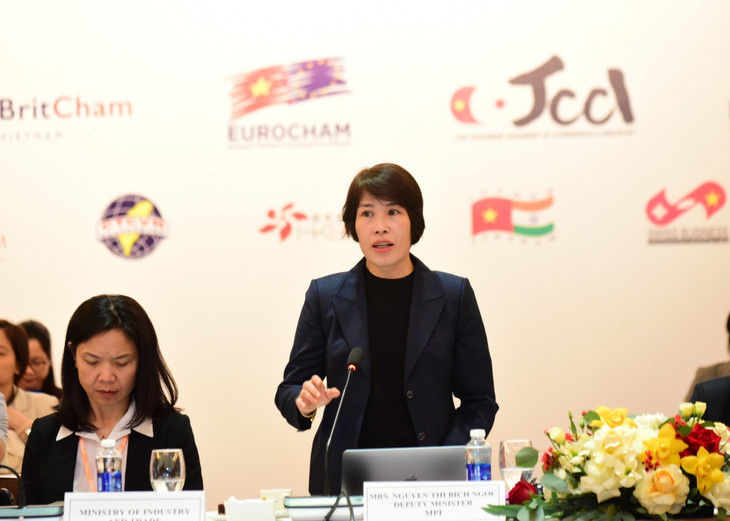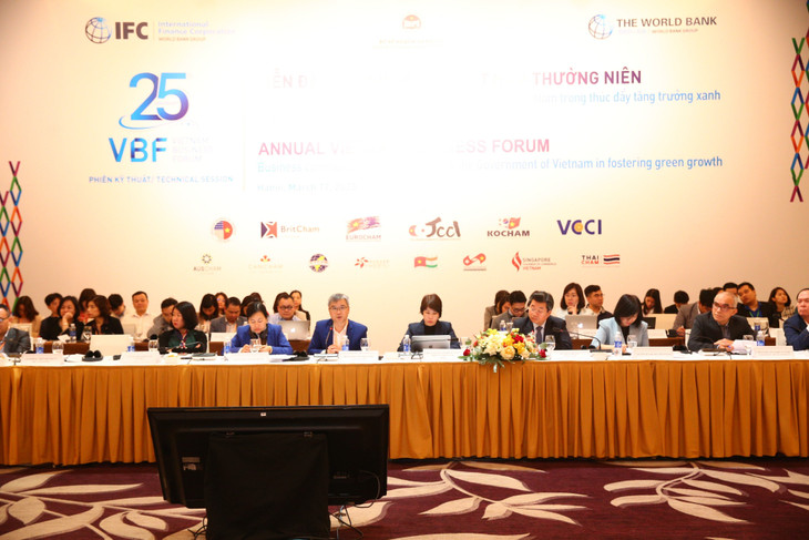 "Trong bối cảnh đó, Chính phủ Việt Nam xác định cộng đồng doanh nghiệp đóng vai trò quan trọng trong thực hiện. Với chủ đề "Cộng đồng doanh nghiệp đồng hành cùng Chính phủ Việt Nam trong thúc đẩy tăng trưởng xanh" của VBF năm nay, chúng tôi hy vọng sẽ cung cấp những thông tin hữu ích và lắng nghe ý kiến thẳng thắn, kinh nghiệm thực tế, phản ánh trực diện những khó khăn vứng mắc của doanh nghiệp. Để từ đó, cộng đồng doanh nghiệp, cùng cơ quan quản lý cùng chung tay tạo môi trường đầu tư kinh doanh thuận lợi và doanh nghiệp phát triển", Thứ trưởng Nguyễn Thị Bích Ngọc cho biết.