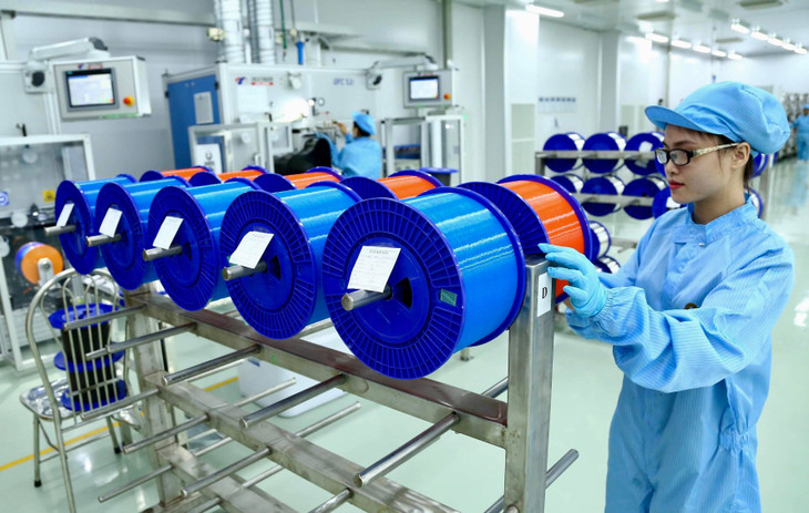 Sản phẩm của nhà máy là các loại sợi quang theo tiêu chuẩn quốc tế với tổng sản lượng theo thiết kế 3,2 triệu km sợi/năm. Ảnh: Lê Tiên