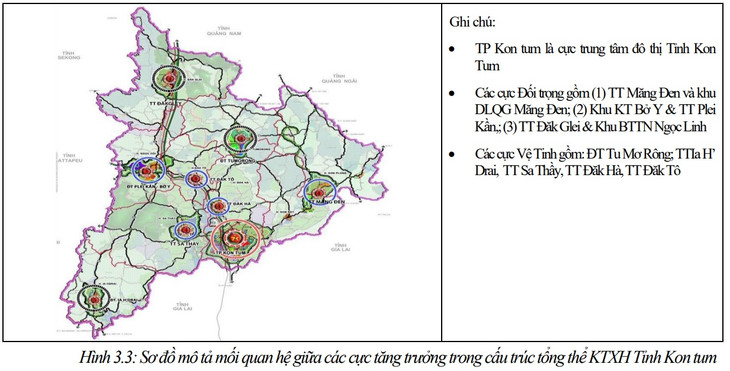 Phát triển 3 trung tâm động lực tăng trưởng, gồm: TP. Kon Tum, Khu du lịch sinh thái Măng Đen và Khu kinh tế cửa khẩu quốc tế Bờ Y.