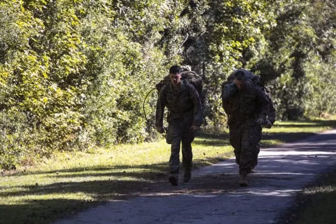Hành quân mang vác nặng đường dài trong thời gian giới hạn là một trong các bài kiểm tra đánh giá của lính bắn tỉa trinh sát.