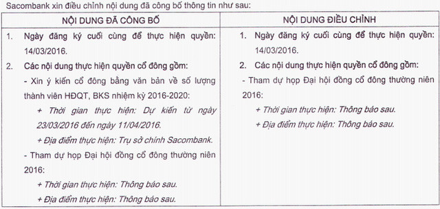 Theo thông báo này, ngày đăng ký cuối cùng thực hiện quyền tham dự đại hội vẫn là ngày 14/3/2016 như đã công bố trước đó.