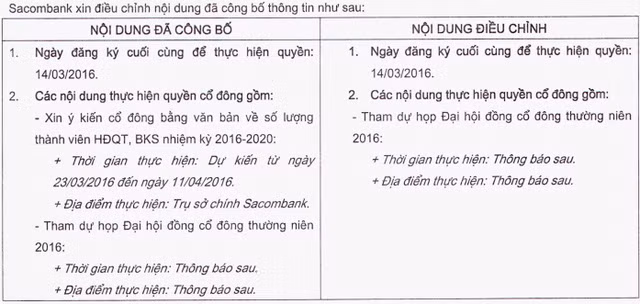 Sacombank cũng không giải thích nguyên nhân của sự điều chỉnh này.