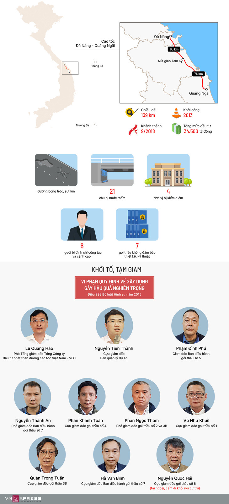 10 cán bộ bị cáo buộc gây hậu quả nghiêm trọng khi triển khai xây cao tốc Đà Nẵng - Quảng Ngãi, vốn đầu tư 34.500 tỷ đồng.