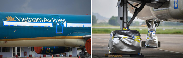 | Do không dùng lâu ngày tới vài tháng, hầu hết máy bay tại sân đỗ đều được bịt kín động cơ, bánh xe và các hệ thống cửa kính. |