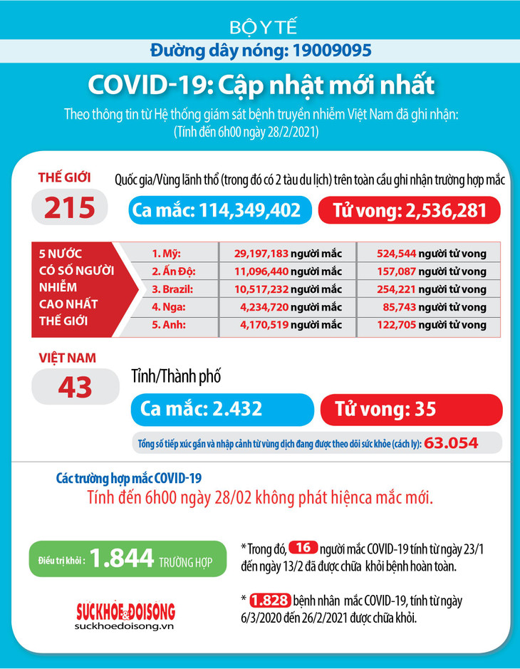 Số ca mắc trên thế giới là 114.394.402; 2.563.281 người tử vong.