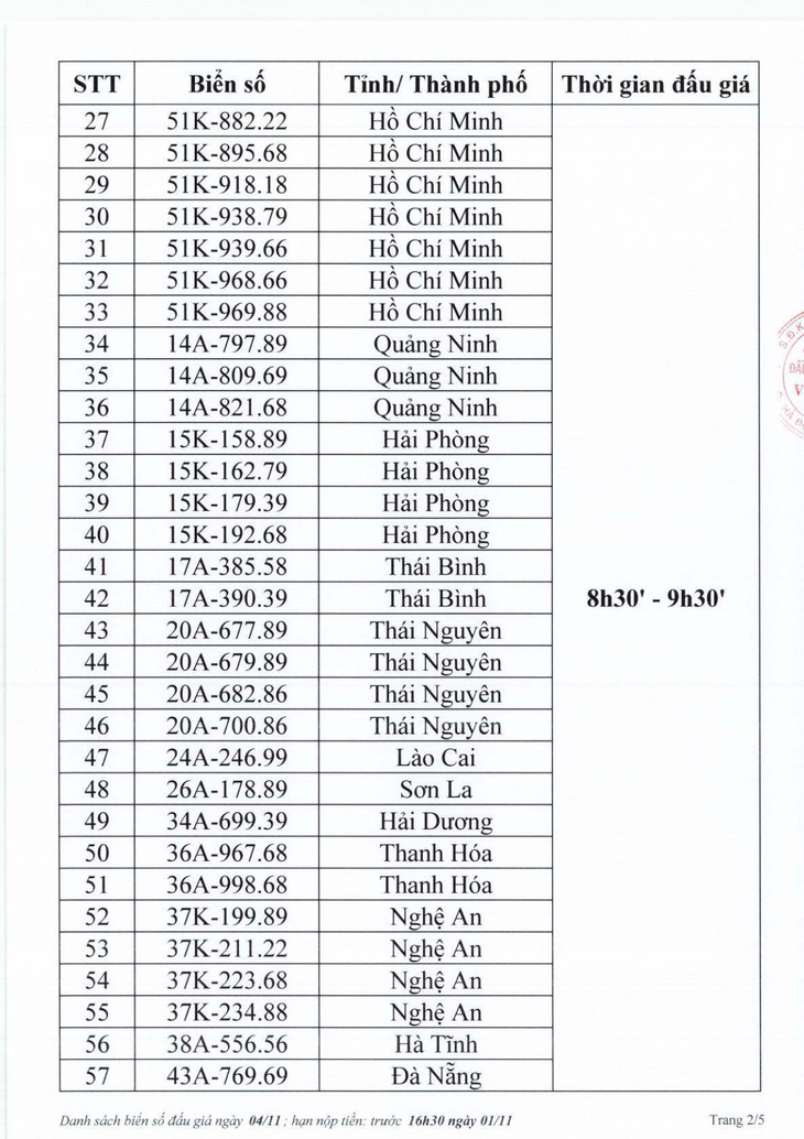 | Danh sách biển số chờ đấu giá |