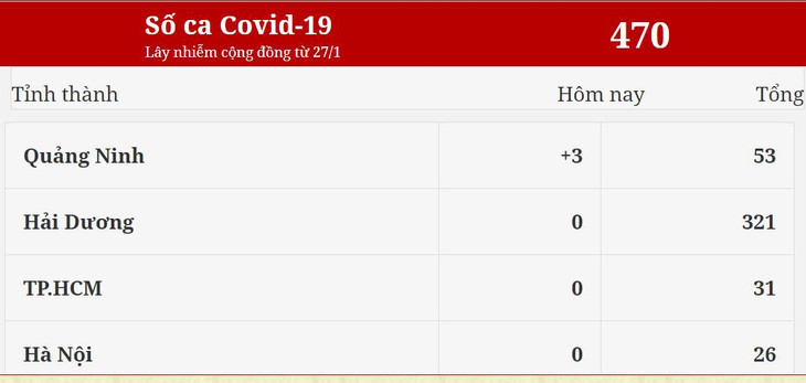 - CA BỆNH 2052 (BN2052): nam, 61, tuổi, địa chỉ tại thị xã Đông Triều, tỉnh Quảng Ninh (thông tin dịch tễ đang được điều tra bổ sung).