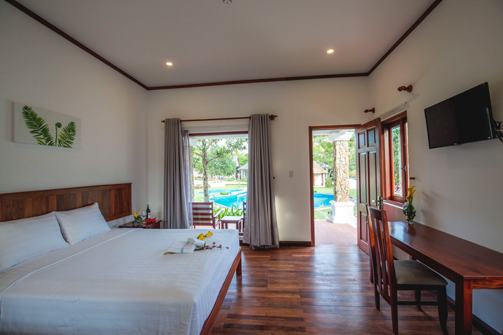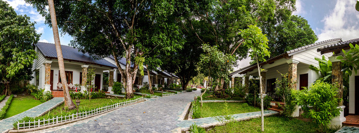 Một nhân viên làm việc tại resort này kể, ở trong khuôn viên resort có mấy trăm cây xoài, trong đó có hàng chục cây có tuổi thọ cả 100 năm và một vườn sim của resort tự trồng. Ngoài việc tạo ra những mảng xanh kỳ thú, khách đến đây còn được thưởng thức miễn phí những món trái cây đặc sản sạch không thuốc trừ sâu nên họ rất yêu thích.