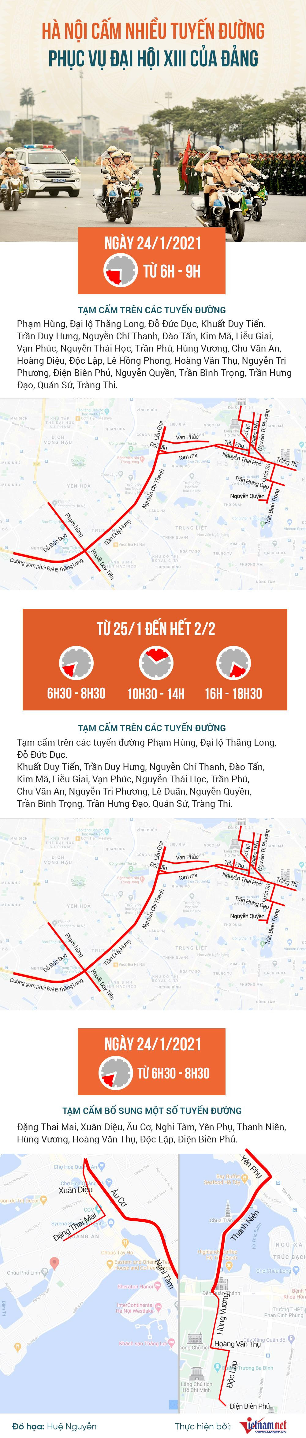 Trong thời gian trên, Công an Hà Nội tổ chức hướng đi cho các phương tiện trong diện tạm cấm như sau: